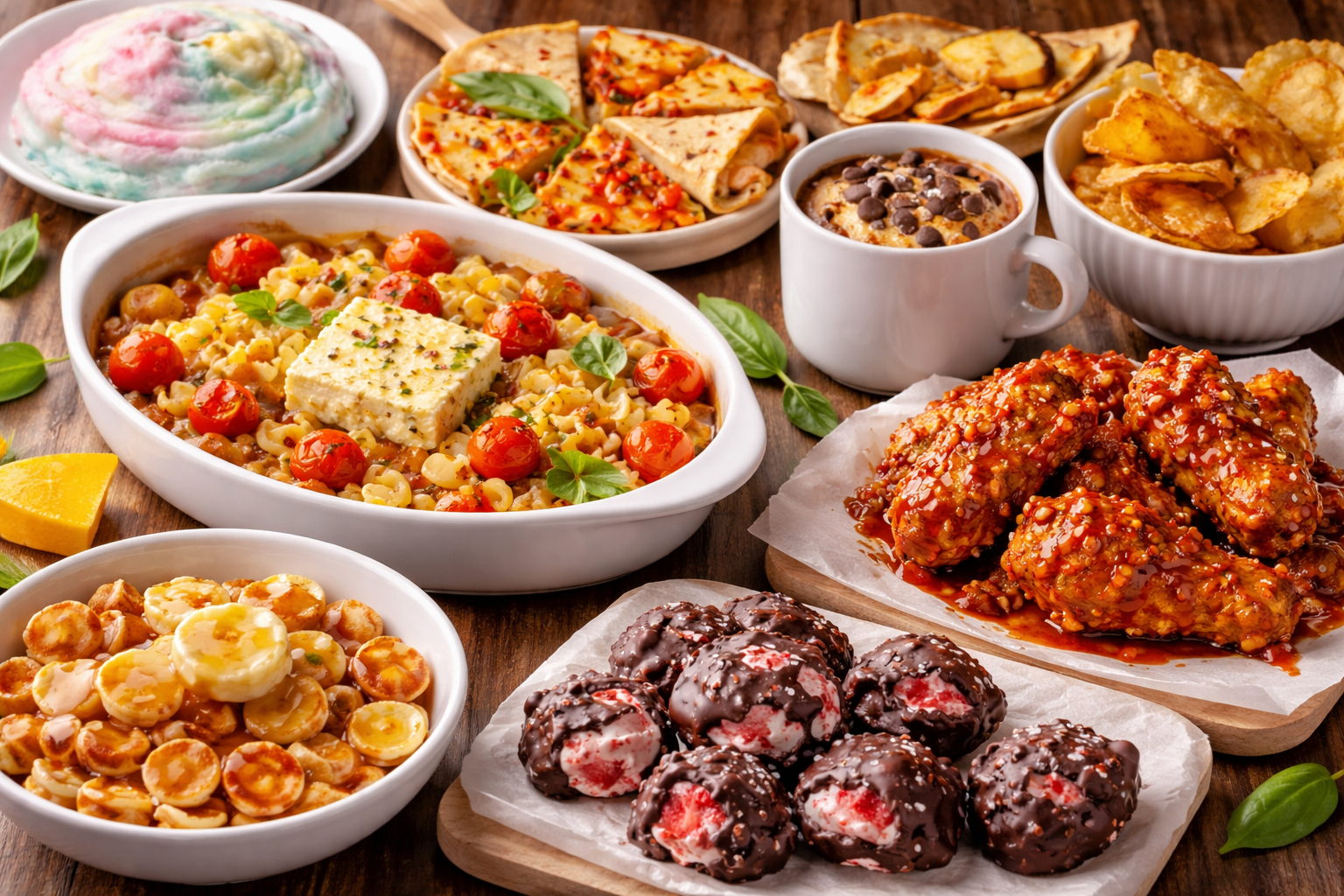 Discover the most viral TikTok food trends you can easily try at home. This guide includes simple and delicious recipes like baked feta pasta, cloud bread, dalgona coffee, pancake cereal, custard toast, mug cake, crispy potato chips, chocolate yogurt clusters and hot honey chicken. Each recipe is beginner friendly fun and made with everyday ingredients. Perfect for quick meals snacks and creative cooking ideas that will make your food experience more exciting and enjoyable every day.