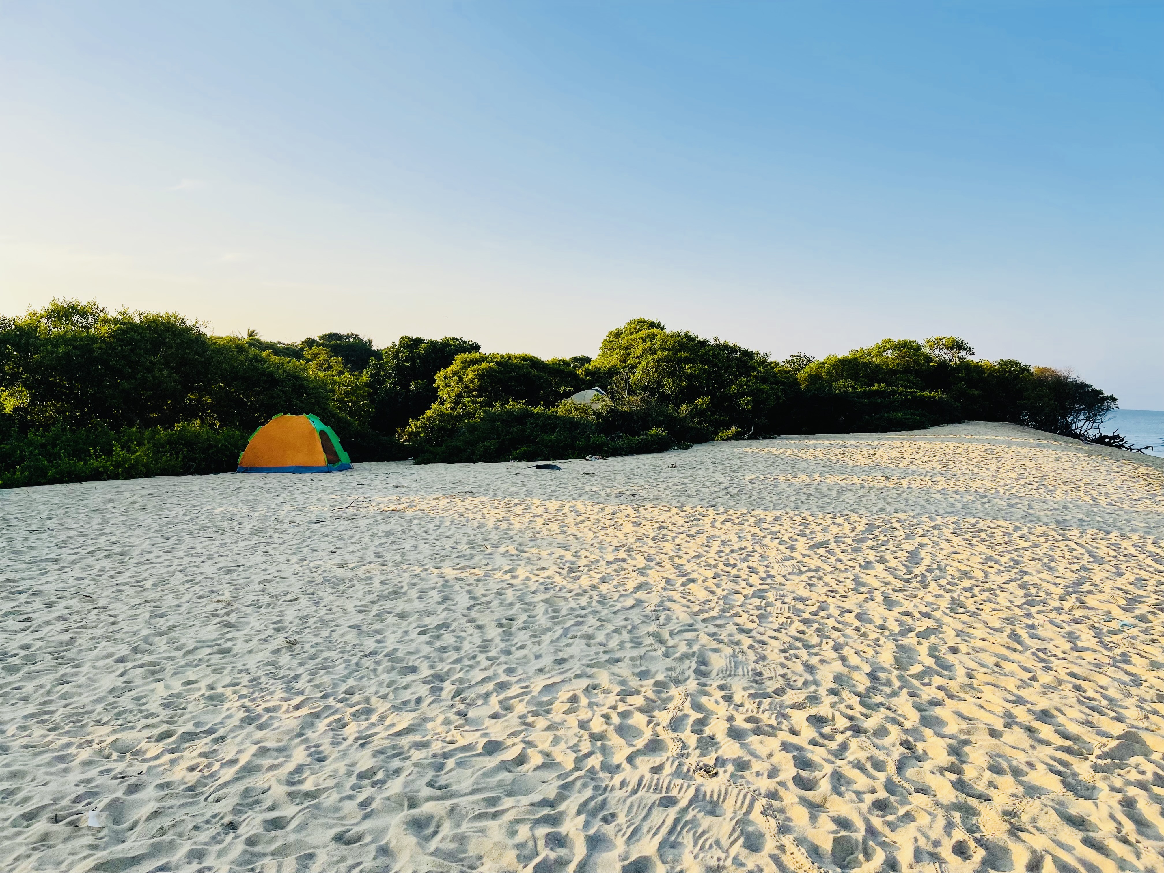 We planned to stay on Battalangunduwa Island for one day camping, so we brought everything needed for cooking and staying overnight. After arriving on the island, we chose a suitable place near the sea and set up our camp.