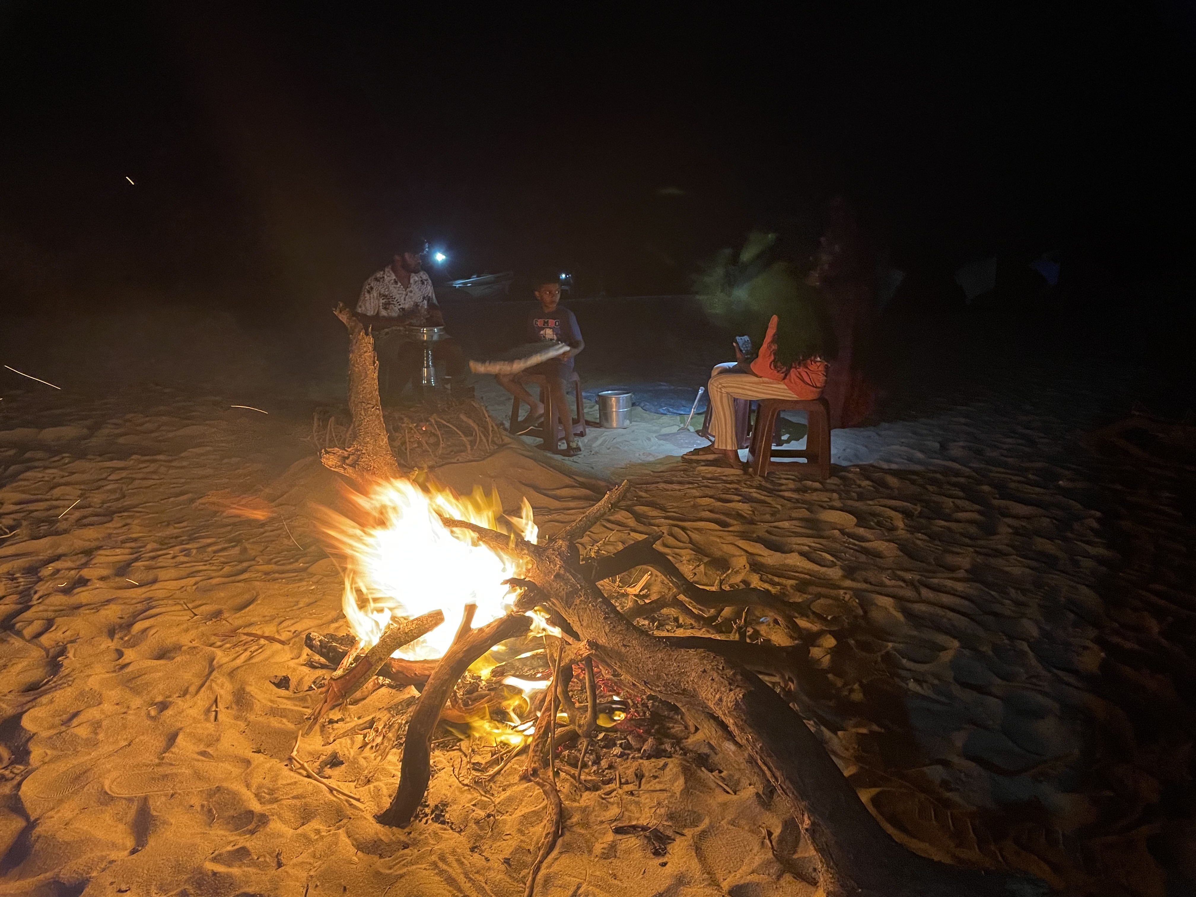 The firelight, cool breeze, and sound of the sea made the night unforgettable. We felt very peaceful and happy. It was a rare chance to spend time without mobile phones, noise, or stress.