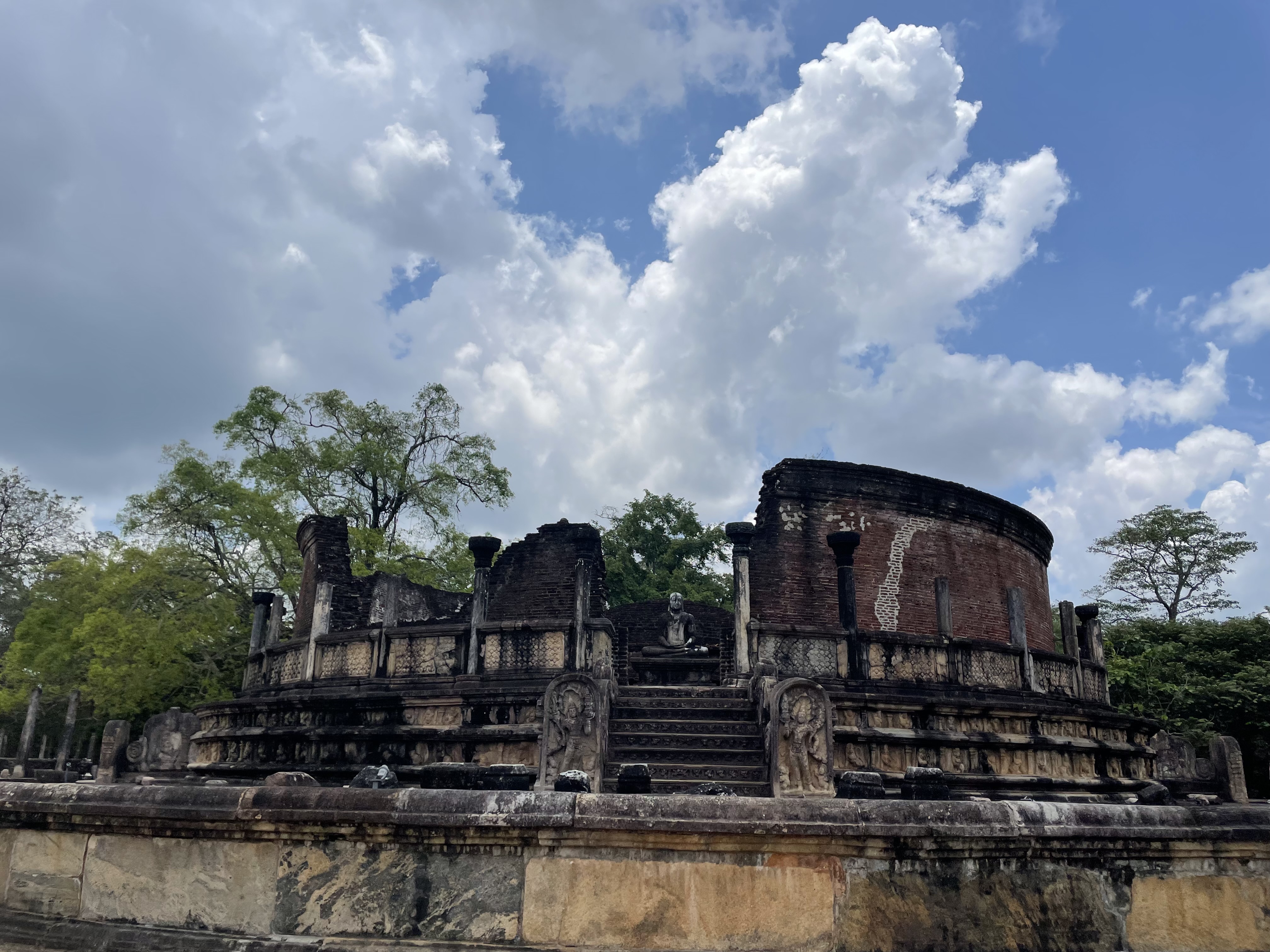 Nearby, Kiri Vihara shone in pure white, contrasting beautifully against the blue sky. Unlike many ruins, this stupa remains active in worship. Devotees circumambulator quietly, reminding me that Polonnaruwa is not frozen in time—it still lives.